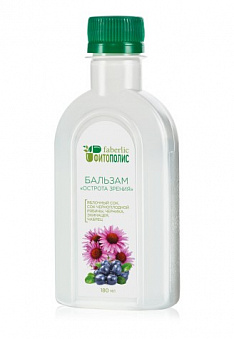 Состав: вода, фруктоза, концентрированные соки – яблочный и черноплодной рябины, экстракт плодов черники, травы эхинацеи пурпурной, листьев крапивы, травы чабреца, лепестков суданской розы, цветков пижмы, цветков календулы, корицы, гвоздики, регулятор кислотности лимонная кислота, антиокислитель аскорбиновая кислота.