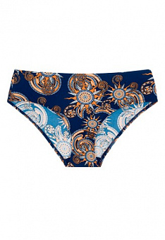 Роскошное и беспроигрышное сочетание глубокого синего и бронзового цветов. Изысканный фантазийный принт в морской и этнической тематике.