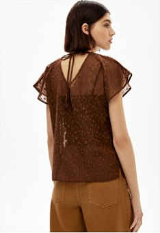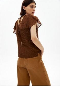 - Блузка из жаккардового полупрозрачного шифона с завязками на спине.