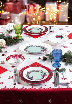 Нарядный сервиз с настроением зимнего праздника станет лучшим украшением стола! Традиционный новогодний дизайн, идеальные сочетания и практичные формы – в новой коллекции посуды из фарфора Happiness.