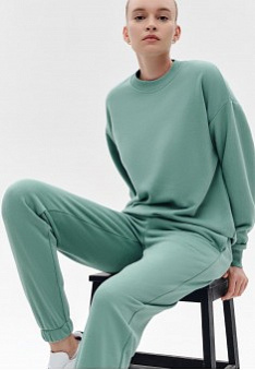- товаром - Брюки-джогеры из футера, цвет шалфей, его цена - 1699 Р, такой набор обойдется в 3398 Р