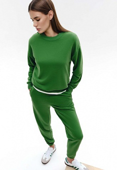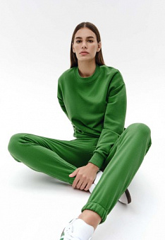 Брюки-джогеры из футера, цвет зеленый Фаберлик артикул - СТ_9708, весом 428 гр. цена - 1699 руб., выбрав из 4 размеров (от XS (42) до XXL (52)), с доставкой в пункты выдачи Faberlic, постаматы Рickpoint и отделения почты России