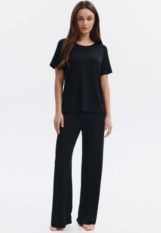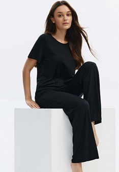 Брюки из нежной вискозы – это оптимальный выбор для комфортных домашних образов. Легкий материал красиво струится и приятен телу.
