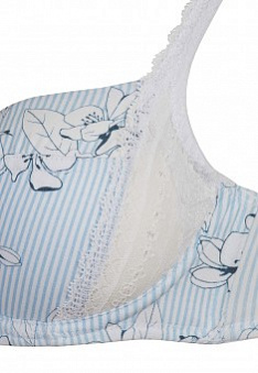 Бюстгальтер Amina – для одухотворённых и романтичных. Милый цветочный орнамент смотрится особенно женственно в обрамлении изящного бело кружева.
