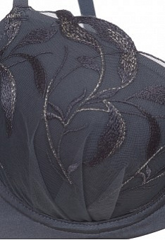 Бюстгальтер Seleste выполнен в цвете маренго. Этот сложный оттенок сочетает аристократическую глубину синего и стальное мерцание серого. Провокационный, многогранный и благородный, он завораживает и подчёркивает переменчивость женской натуры.