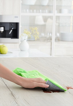Универсальная салфетка с уголком предназначена для сухой и влажной уборки без использования химических средств.