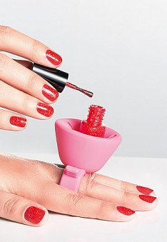 Держатель для лака – простое, но такое практичное приспособление для модниц! Надевается на пальцы, как кольцо, и удерживает бутылочку, пока ты покрываешь ногти свежим слоем лака!