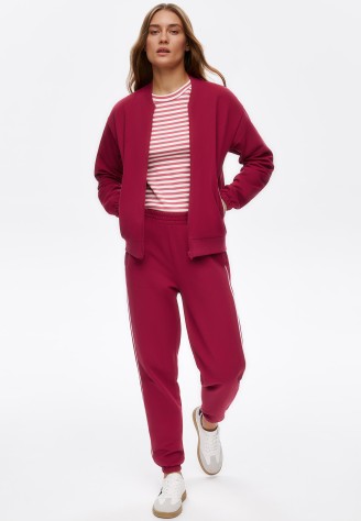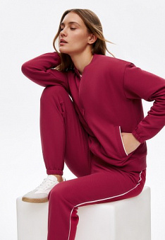 - товаром - Брюки джогеры из пике, цвет малиновый, его цена - 2499 Р, такой набор обойдется в 4998 Р