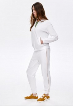 - товаром - Брюки джогеры из пике, цвет молочный, его цена - 2499 Р, такой набор обойдется в 4998 Р