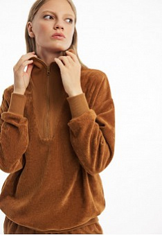 Джемпер с горлом на молнии из мягкого вельветового полотна подарит комфорт и свободу движений.
