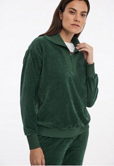 Джемпер с горлом на молнии из мягкого вельветового полотна подарит комфорт и свободу движений.