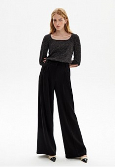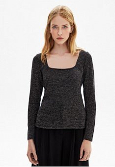 В этот холодный зимний сезон поднимать себе настроение – наша стильная миссия! Создать сияющие образы поможет черный джемпер с люрексом. Добавляем яркий акцент в аутфит, сочетая джемпер с классическими жакетами, брюками прямого кроя/клеш, джинсами, юбками крандаш или летящими юбками плиссе. Прилегающий силуэт подчеркнет талию, вырез каре удлинит шею, классический черный подружится с любой цветовой палитрой аутфита, и не смотря на блеск люрекса, сделает образ более сдержанным.