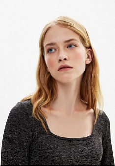- Прилегающий силуэт, вырез каре, длинные рукава.