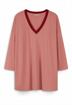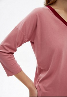 - Прямой силуэт, V-образный вырез, рукава длиной 3/4.