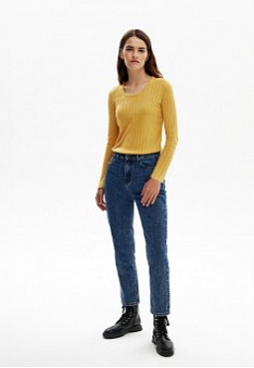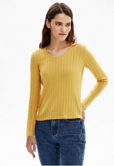 - Прямой силуэт, круглый вырез, длинные рукава.