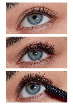 - Специально разработанная гибкая силиконовая щеточка придает экстраобъем и приподнимает каждую ресничку