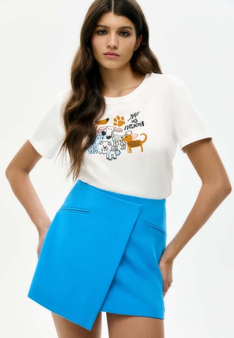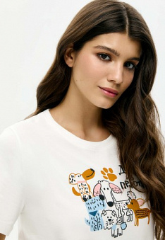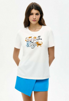 Футболка «Друг из приюта», принт «Друзья» Фаберлик артикул - СТ_9847, весом 151 гр. цена - 1299 руб., выбрав из 4 размеров (от XS (42) до XXL (52)), с доставкой в пункты выдачи Faberlic, постаматы Рickpoint и отделения почты России