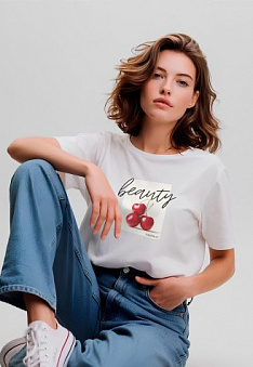 Футболка женская с принтом «Beauty» цвет белый Фаберлик артикул - СТ_10200, весом 129 гр. цена - 1199 руб., выбрав из 3 размеров (от XS (42) до XXL (52)), с доставкой в пункты выдачи Faberlic, постаматы Рickpoint и отделения почты России