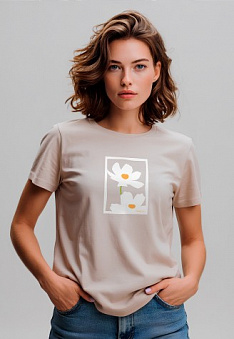 Футболка женская с принтом «Ромашки» цвет бежевый Фаберлик артикул - 895172-895177, весом 129 гр. цена - 1199 руб., выбрав из 4 размеров (от XS (42) до XXL (52)), с доставкой в пункты выдачи Faberlic, постаматы Рickpoint и отделения почты России