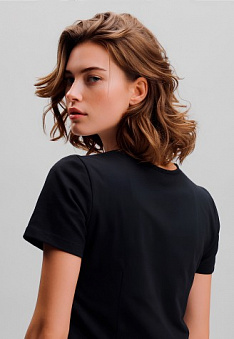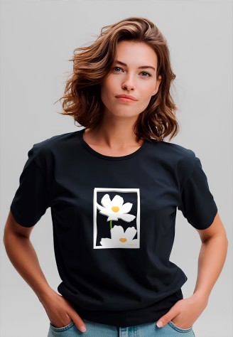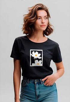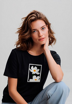 Футболка женская с принтом «Ромашки» цвет черный Фаберлик артикул - СТ_10210, весом 129 гр. цена - 999 руб., выбрав из 4 размеров (от XS (42) до XXL (52)), с доставкой в пункты выдачи Faberlic, постаматы Рickpoint и отделения почты России