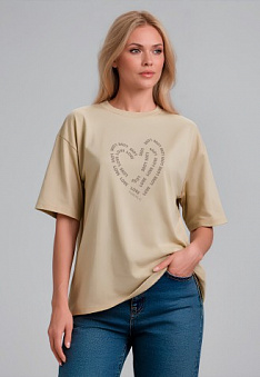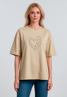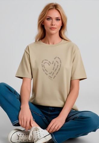 Футболка оверсайз с принтом «Love», цвет бежевый