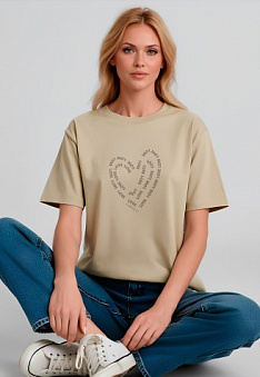 Футболка оверсайз с принтом «Love», цвет бежевый Фаберлик артикул - СТ_10245, весом 159 гр. цена - 999 руб., выбрав из 4 размеров (от XS (42) до XXL (52)), с доставкой в пункты выдачи Faberlic, постаматы Рickpoint и отделения почты России