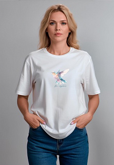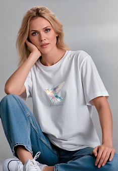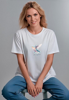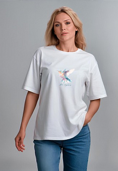 Футболка оверсайз с принтом «Все сбудется», цвет белый Фаберлик артикул - СТ_10243, весом 159 гр. цена - 1199 руб., выбрав из 4 размеров (от XS (42) до XXL (52)), с доставкой в пункты выдачи Faberlic, постаматы Рickpoint и отделения почты России