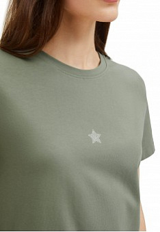 Футболка с декором, цвет хаки Фаберлик артикул - 826706 - 826711, весом 164 гр. из серии - CLASSIC, цена - 799 руб., выбрав из 4 размеров (от S (44) до XS (42)), с доставкой в пункты выдачи Faberlic, постаматы Рickpoint и отделения почты России