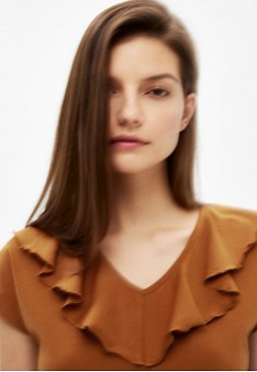 Футболка с воланами, цвет горчичный Фаберлик артикул - 533947 - 533954, весом 130 гр. цена - 99 руб., выбрав из 3 размеров (от XS (42) до 50), с доставкой в пункты выдачи Faberlic, постаматы Рickpoint и отделения почты России