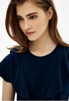 Футболка с воланами, цвет темно-синий Фаберлик артикул - 533995 - 534002, весом 131 гр. цена - 99 руб., выбрав из 3 размеров (от XS (42) до 50), с доставкой в пункты выдачи Faberlic, постаматы Рickpoint и отделения почты России