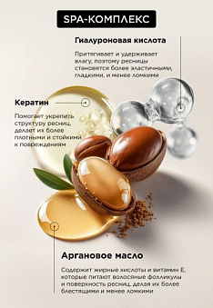 Кератин — белок, из которого состоят волосы и ресницы. Помогает укрепить структуру ресниц, делает их более плотными и устойчивыми к повреждениям.