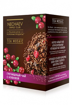 Гречишный чай, клюква, плоды рожкового дерева (кэроб), ароматизаторы «клюква» и «ванильно-сливочный».