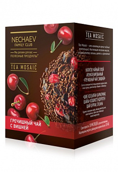 Гречишный чай, плоды рожкового дерева (кэроб), вишня, какао-крупка, ароматизаторы «вишня» и «шоколад».