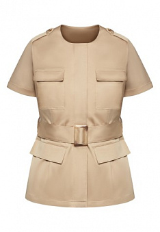 - Жакет в стиле сафари полуприлегающего силуэта с поясом без подкладки.