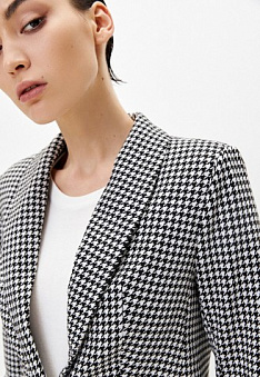 Почувствуй себя героиней романтического французского кино! Приталенный жакет – это изысканный минимализм, который подойдет каждой и создаст образ кинодивы стильных 50-ых. Принт «Пье-де-пуль» или «гусиная лапка» – классика, которая впишется в любой дресс-код и сделает его элегантным и утонченным.