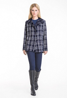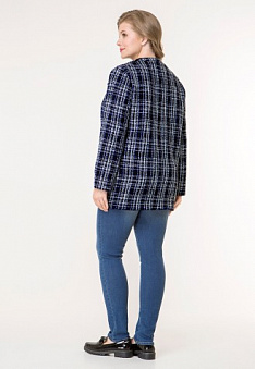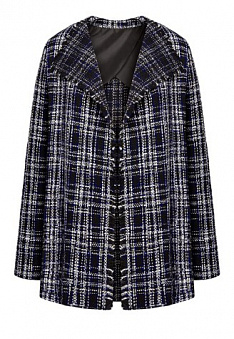 - Удлиненный жакет свободного силуэта из твида без застежки.