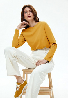 Женская футболка-лонгслив, цвет горчичный Фаберлик артикул - СТ_9768, весом 192 гр. цена - 1399 руб., выбрав из 4 размеров (от XS (42) до XXL (52)), с доставкой в пункты выдачи Faberlic, постаматы Рickpoint и отделения почты России