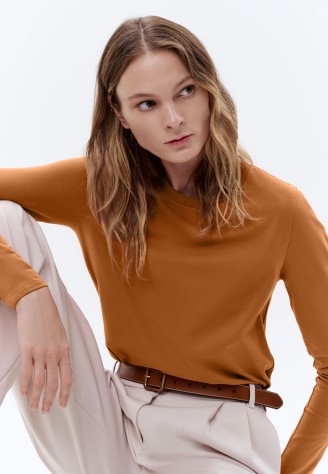 Женская футболка-лонгслив, цвет кэмел Фаберлик артикул - СТ_9631, весом 181 гр. цена - 1399 руб., выбрав из 4 размеров (от XS (42) до XXL (52)), с доставкой в пункты выдачи Faberlic, постаматы Рickpoint и отделения почты России