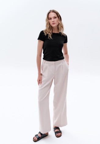 Женская футболка прилегающего силуэта – женственная классика. Актуальные базовые цвета отлично впишутся в любой гардероб.