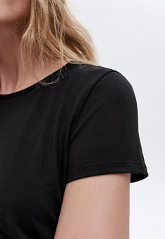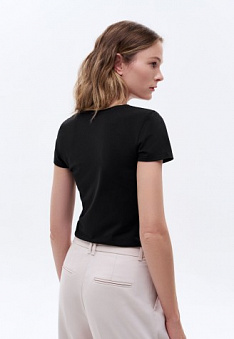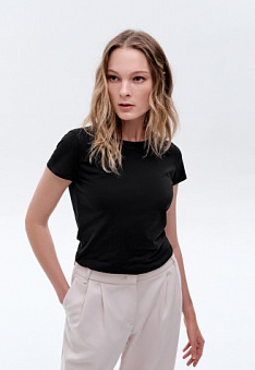 Женская футболка прилегающего силуэта, цвет черный Фаберлик артикул - СТ_9613, весом 117 гр. цена - 1099 руб., выбрав из 4 размеров (от XS (42) до XXL (52)), с доставкой в пункты выдачи Faberlic, постаматы Рickpoint и отделения почты России