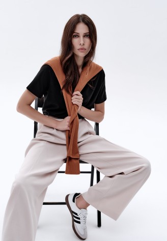 Женская футболка прямого силуэта – это основа любого базового гардероба и всегда актуальная вещь. Идеально сочетается и с юбками, и с деловыми брюками, и с джинсами.