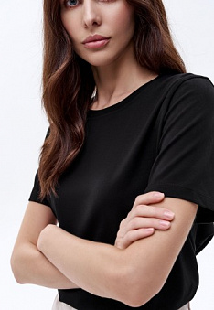 Женская футболка прямого силуэта, цвет черный Фаберлик артикул - 870078-870083, весом 117 гр. цена - 1199 руб., выбрав из 4 размеров (от XS (42) до XXL (52)), с доставкой в пункты выдачи Faberlic, постаматы Рickpoint и отделения почты России