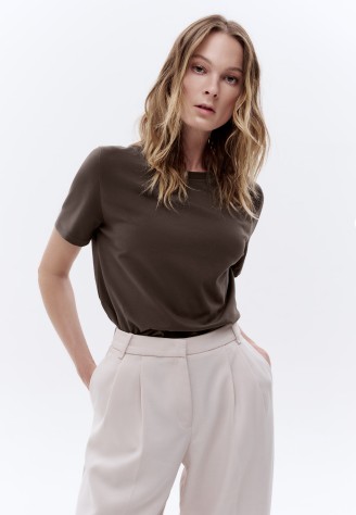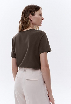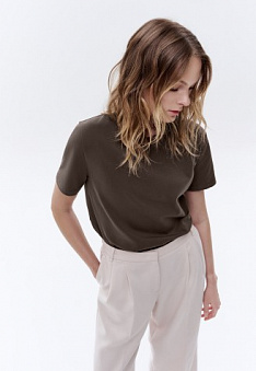 Женская футболка прямого силуэта, цвет шоколадный Фаберлик артикул - СТ_9623, весом 158 гр. цена - 1199 руб., выбрав из 4 размеров (от XS (42) до XXL (52)), с доставкой в пункты выдачи Faberlic, постаматы Рickpoint и отделения почты России