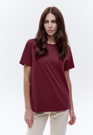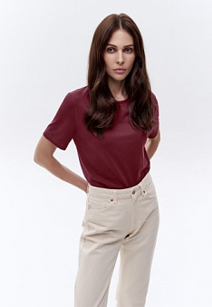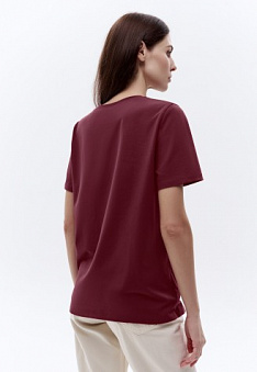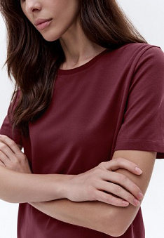 Женская футболка прямого силуэта, цвет винный Фаберлик артикул - СТ_9625, весом 117 гр. цена - 1199 руб., выбрав из 4 размеров (от XS (42) до XXL (52)), с доставкой в пункты выдачи Faberlic, постаматы Рickpoint и отделения почты России