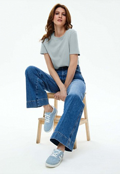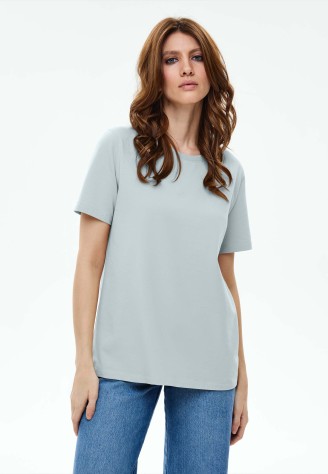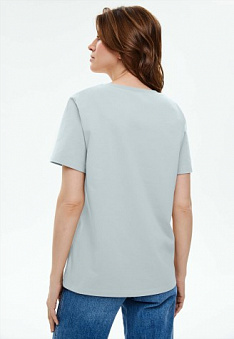 Женская футболка с декором, цвет голубой Фаберлик артикул - СТ_9861, весом 150 гр. цена - 1299 руб., выбрав из 4 размеров (от XS (42) до XXL (52)), с доставкой в пункты выдачи Faberlic, постаматы Рickpoint и отделения почты России