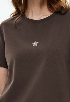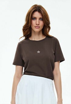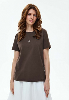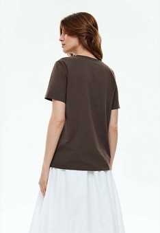 Женская футболка с декором, цвет шоколадный