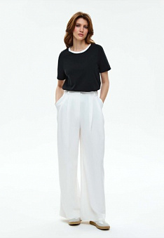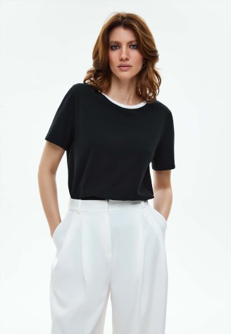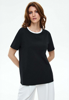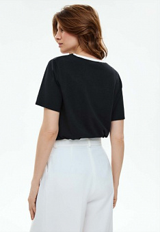 Женская футболка с контрастной отделкой по горловине словно создана для экспериментов! Сочетай ее с классическими брюками или развивай спортивную тему, выбирая к ней шорты и удобные кроссовки.