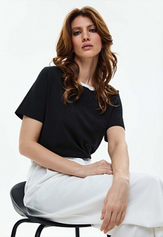 Женская футболка, цвет черный Фаберлик артикул - СТ_9827, весом 151 гр. цена - 1299 руб., выбрав из 4 размеров (от XS (42) до XXL (52)), с доставкой в пункты выдачи Faberlic, постаматы Рickpoint и отделения почты России