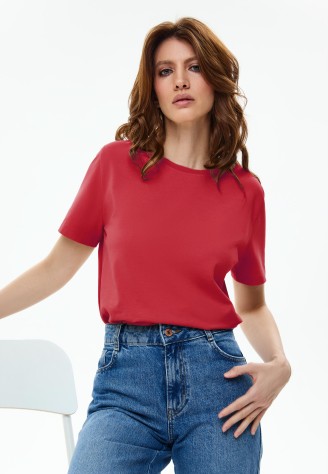 Женская футболка, цвет красный Фаберлик артикул - СТ_9788, весом 130 гр. цена - 1199 руб., выбрав из 4 размеров (от XS (42) до XXL (52)), с доставкой в пункты выдачи Faberlic, постаматы Рickpoint и отделения почты России