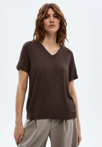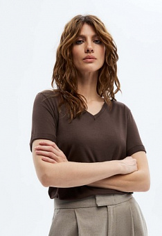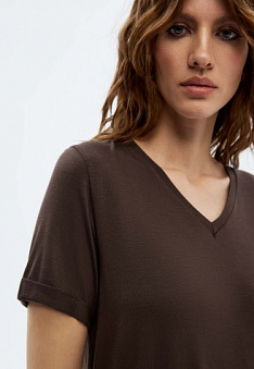 Женская футболка, цвет шоколадный Фаберлик артикул - СТ_9779, весом 130 гр. цена - 1199 руб., выбрав из 4 размеров (от XS (42) до XXL (52)), с доставкой в пункты выдачи Faberlic, постаматы Рickpoint и отделения почты России